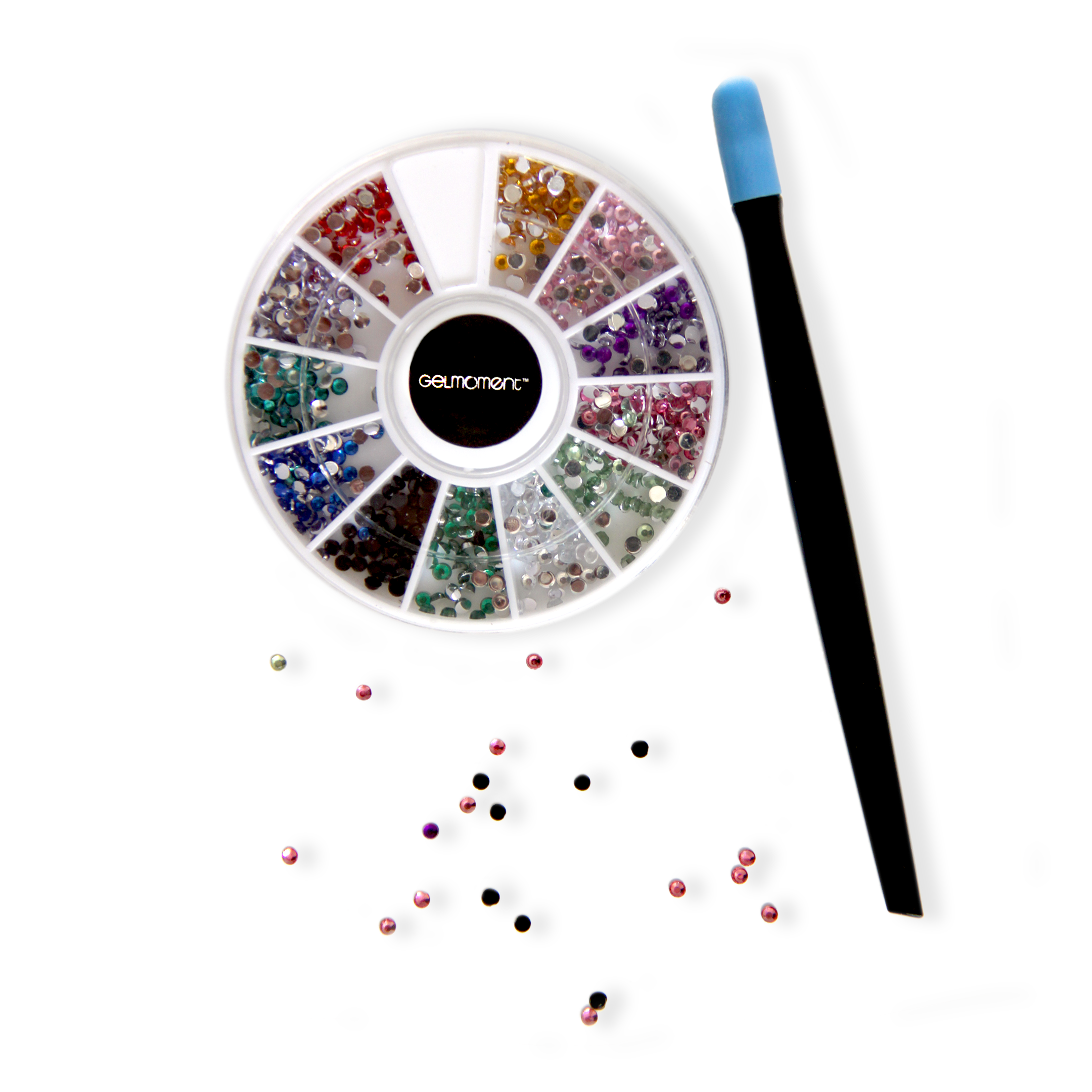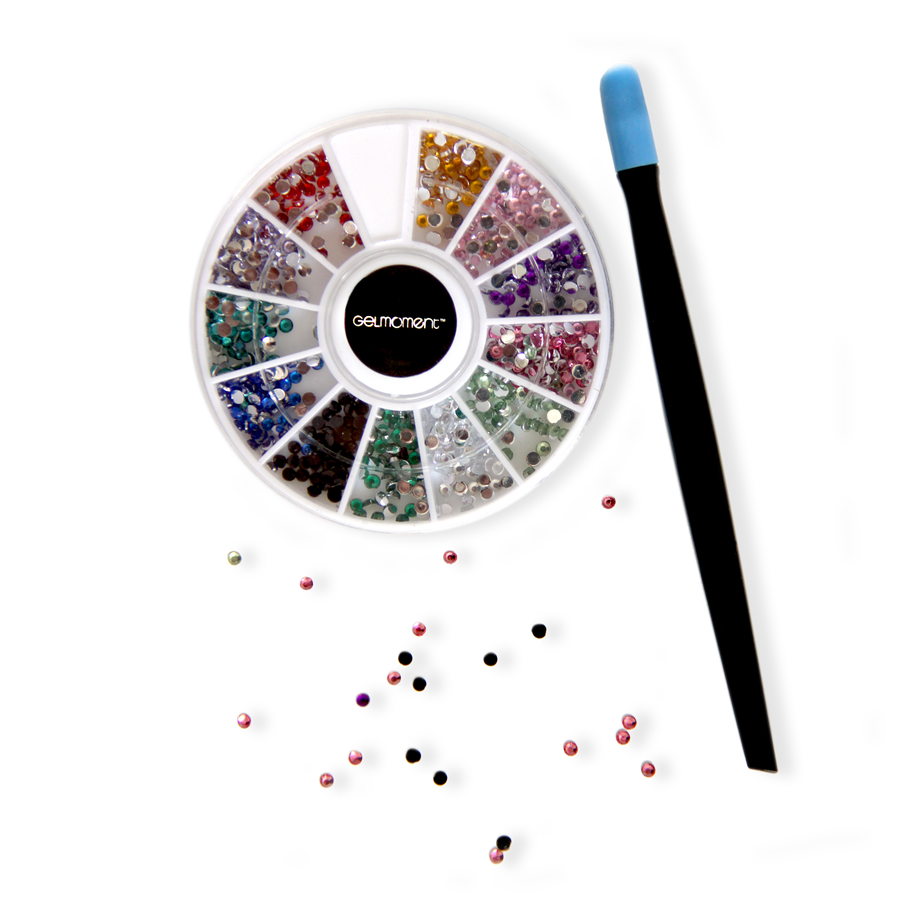 Mini jewels and applicator stick comes packaged in a GelMoment organza sachet.